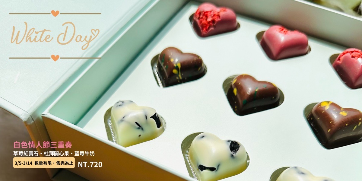 CoCa MaMa推出「白色情人節三重奏」巧克力限定禮盒,這次特製了女生最愛的莓果巧克力,以及話題爆棚的杜拜開心果巧克力,三款人氣美味,讓這份禮物為傳遞心意,也讓收到禮物的對方感受到滿滿的甜蜜與幸福。